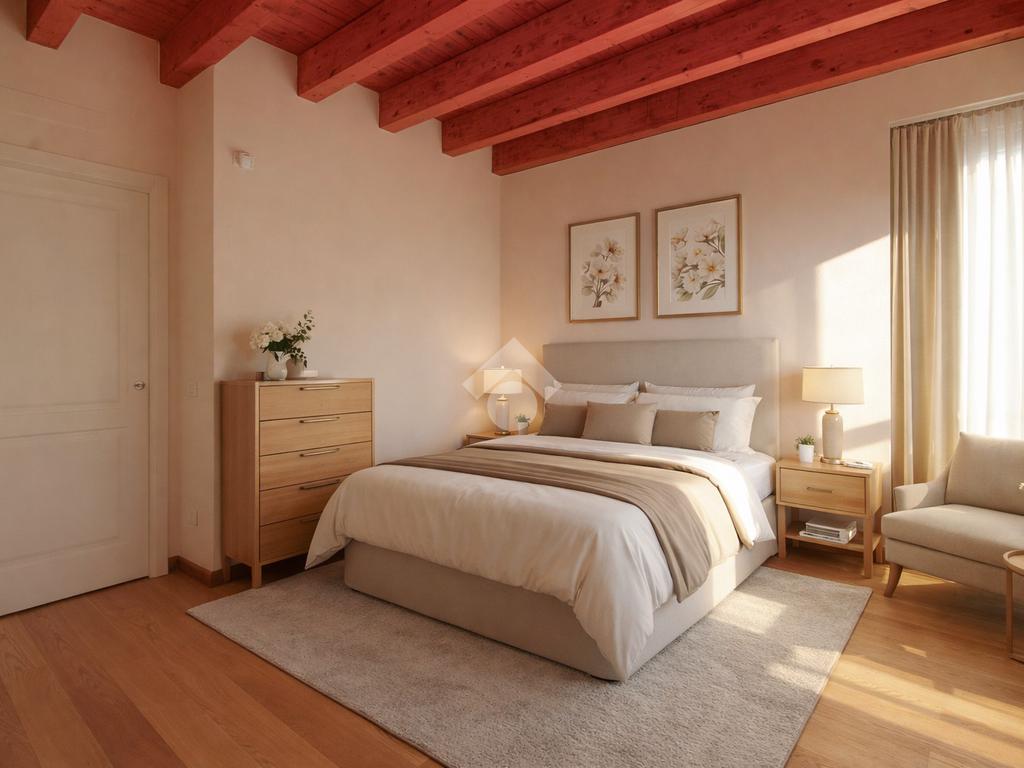 La zona notte del piano primo vede il corridoio centrale che collega tutti gli ambienti del piano: bagno principale, dalle stesse caratteristiche del bagno al piano terra ma dotato di Jacuzzi, camera padronale matrimoniale e seconda camera, singola, fruibile in alternativa come studio o cabina armadio.