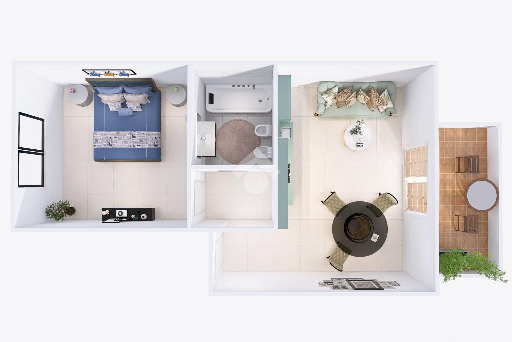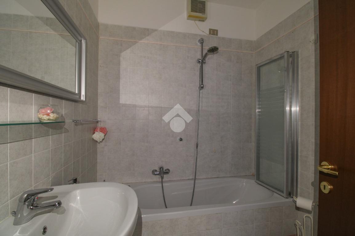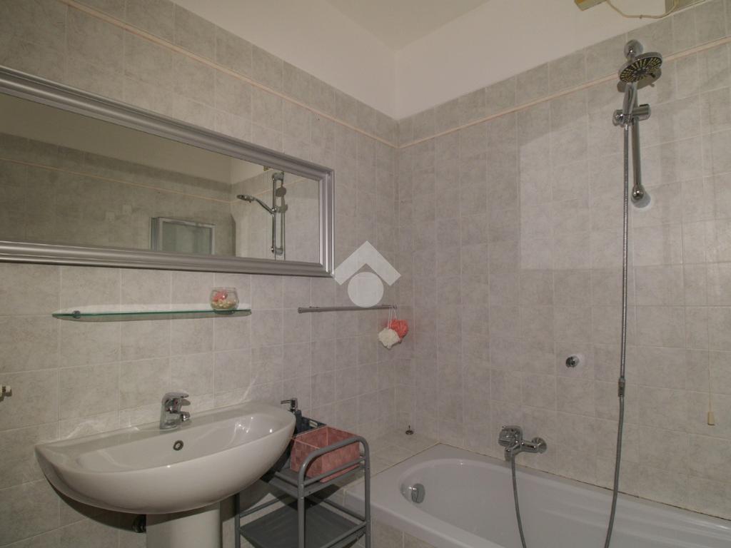 A sinistra, si trova un disimpegno che si apre su un bagno cieco dotato di un impianto di aerazione con vasca, oltre a una spaziosa camera matrimoniale.