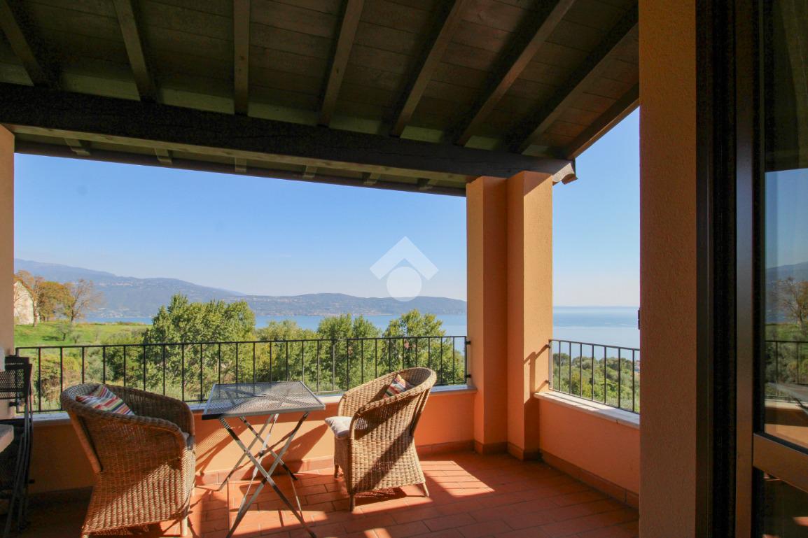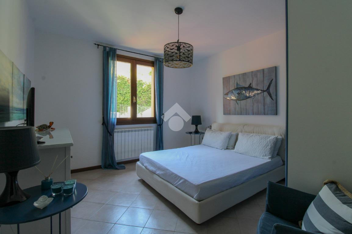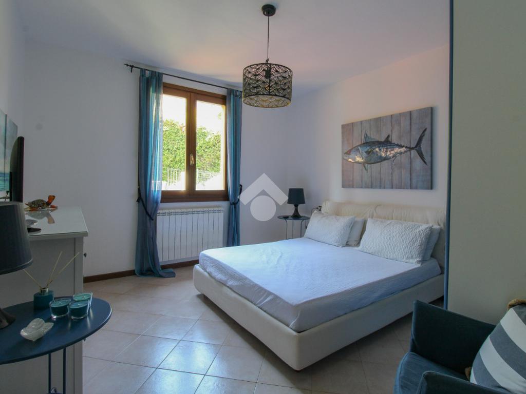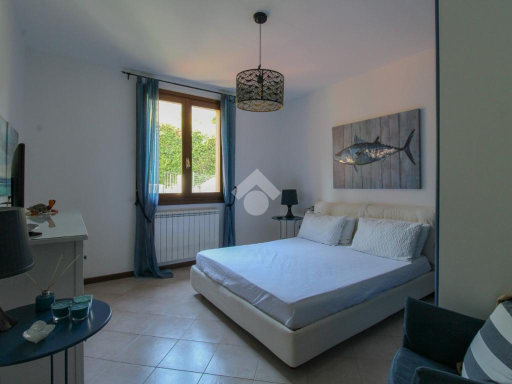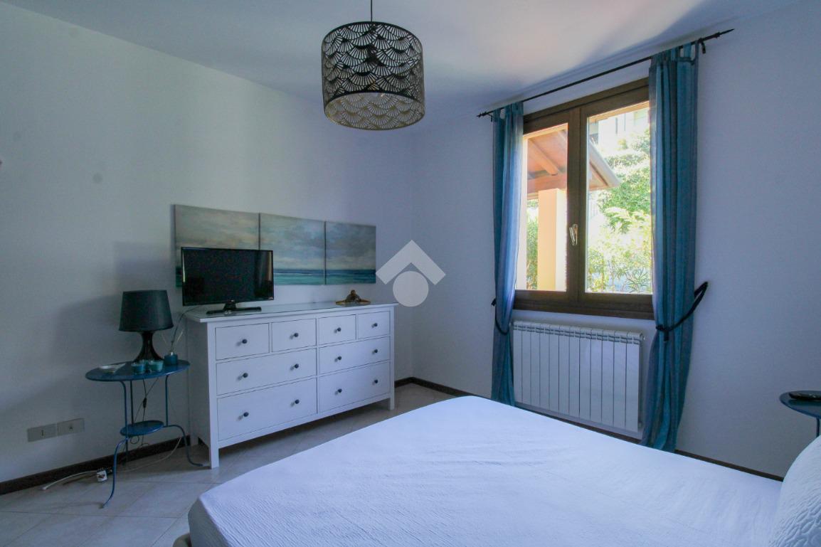 Entrando, si attraversa la zona giorno con cucina a vista, che si affaccia sul suggestivo panorama del lago, creando un'atmosfera luminosa e accogliente.