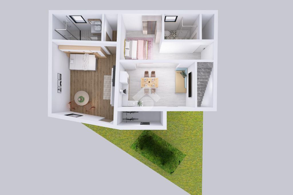 All’esterno è presente anche un comodo posto auto di fronte all’abitazione, utilizzabile come area di carico e scarico.