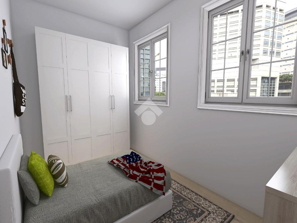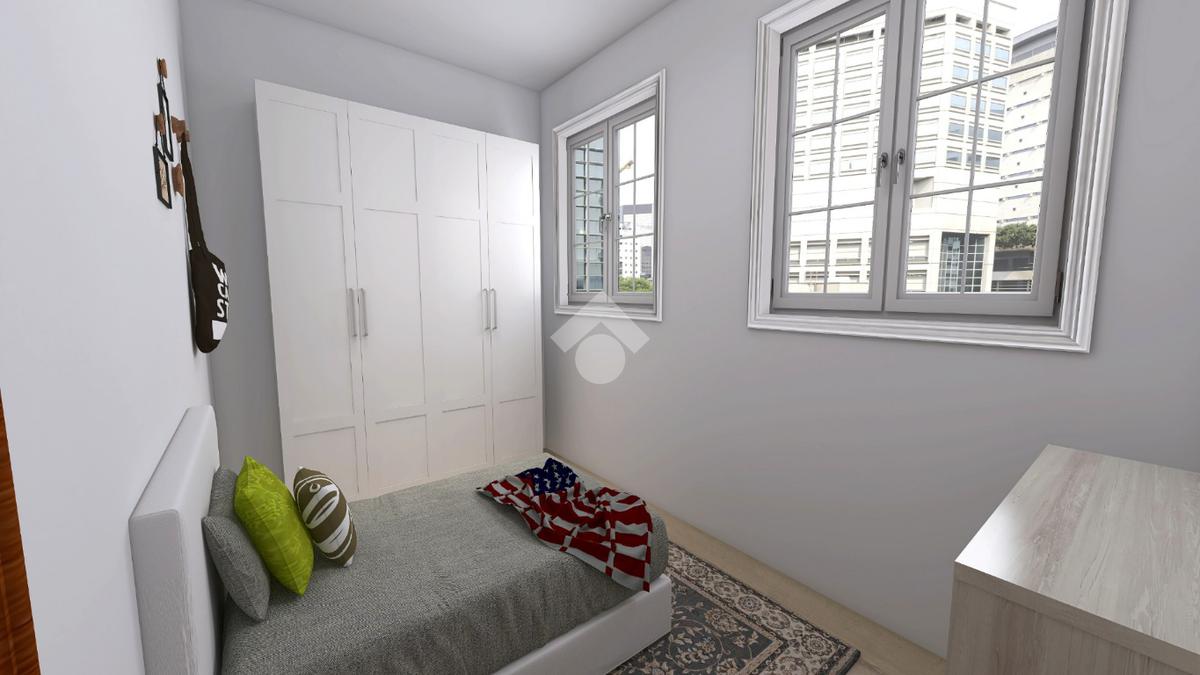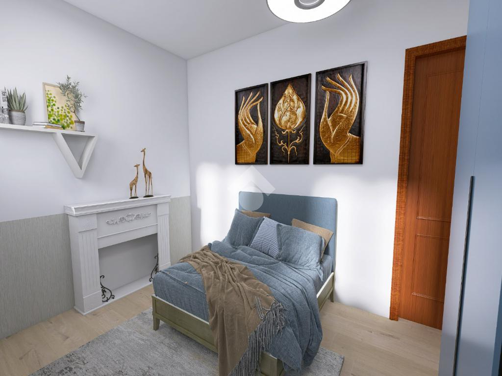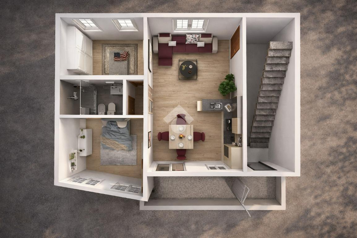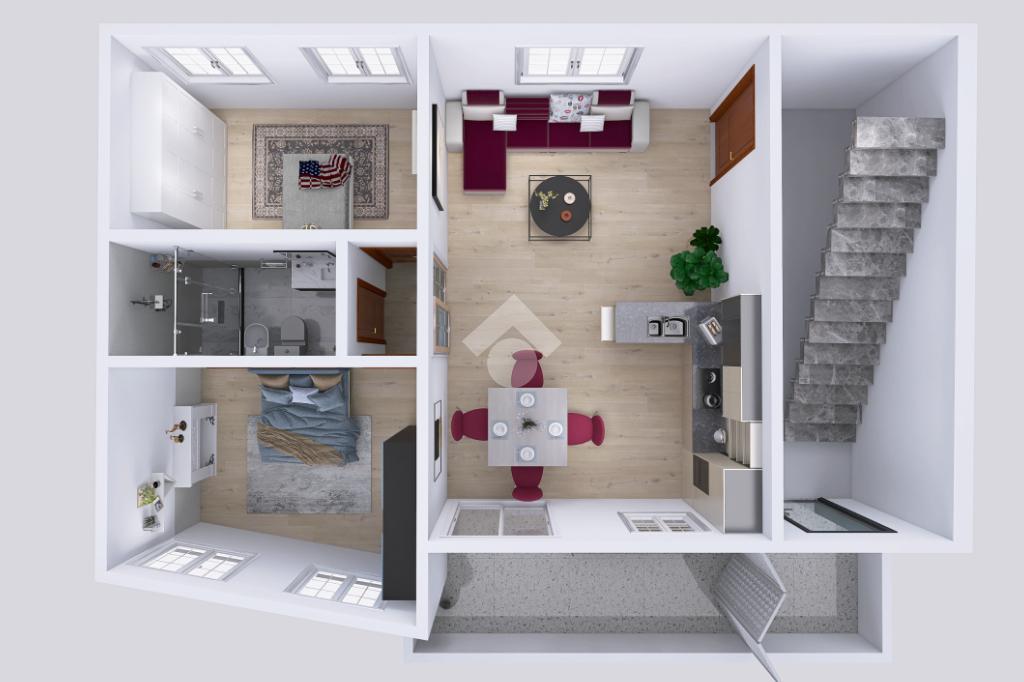 L’appartamento si compone di soggiorno con cucina, due camere da letto finestrate, di cui una impreziosita da un caratteristico camino e bagno cieco con ventola di aerazione.