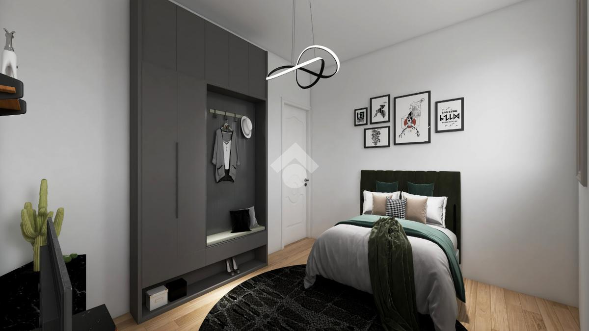 L’appartamento si compone di soggiorno con cucina, due camere da letto finestrate, di cui una impreziosita da un caratteristico camino e bagno cieco con ventola di aerazione.
