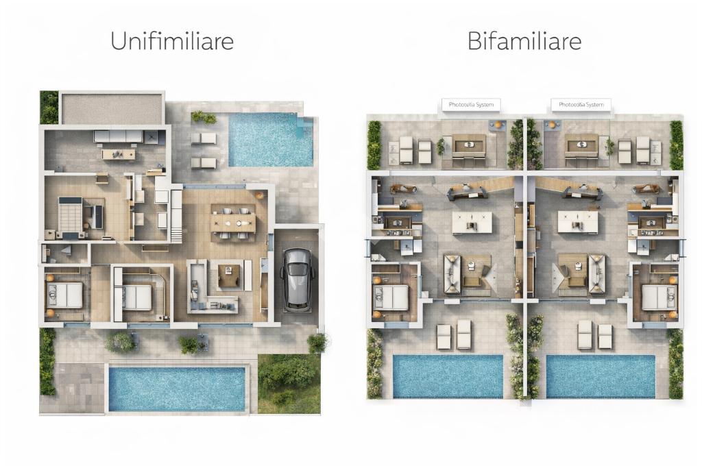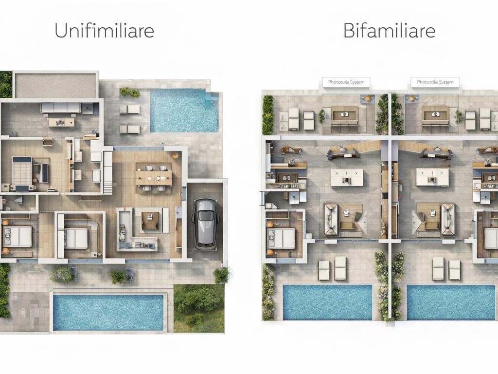 Il lotto ha una superficie di 2.000 metri quadrati e dispone di un progetto edilizio già approvato, che prevede la realizzazione di due eleganti unità abitative: una Villa Unifamiliare e una Villa Bifamiliare.